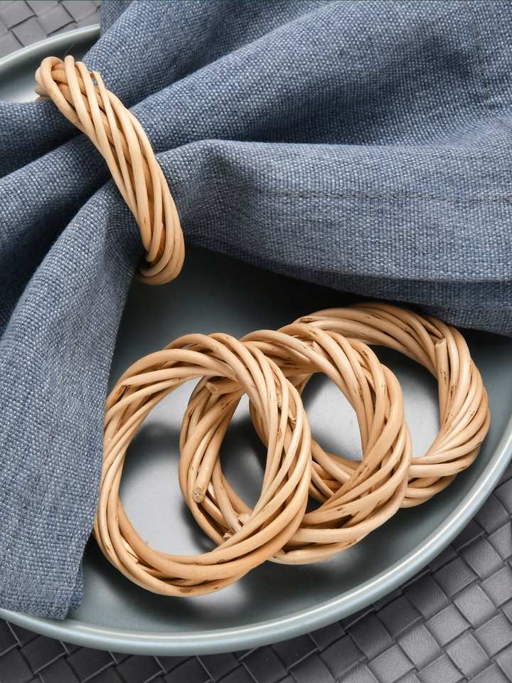 Servilletero decorativo de ratán para granja con acabado natural para complementar las telas de servilleta de mesa de lino y algodón