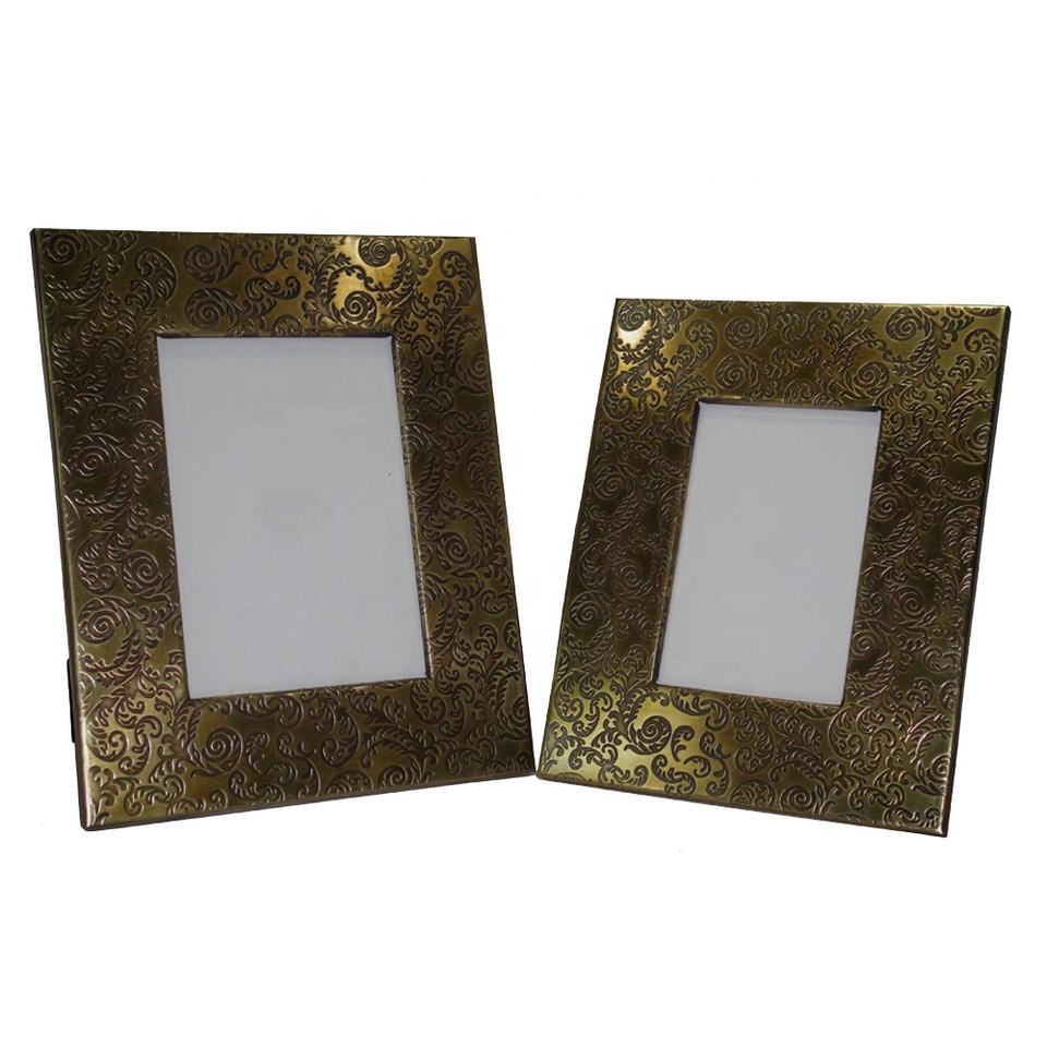 Marco DE FOTOS dorado decorativo con trabajo en relieve de flores, marco de fotos de metal redondo simple plateado personalizado, marco de fotos de flores doradas