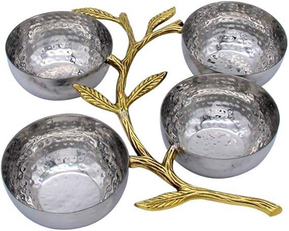 Tazón decorativo martillado a mano con tallo de flor dorada, bellamente hecho a mano para la decoración del hogar y el restaurante