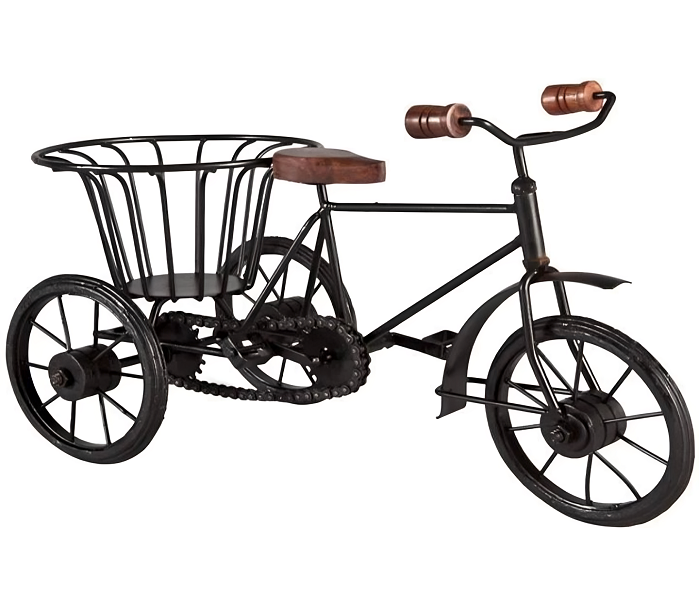 Carrito de metal decorativo hecho a mano con mango de asiento de madera y cesta para el hogar, sala de estar, oficina, exhibición de mesa