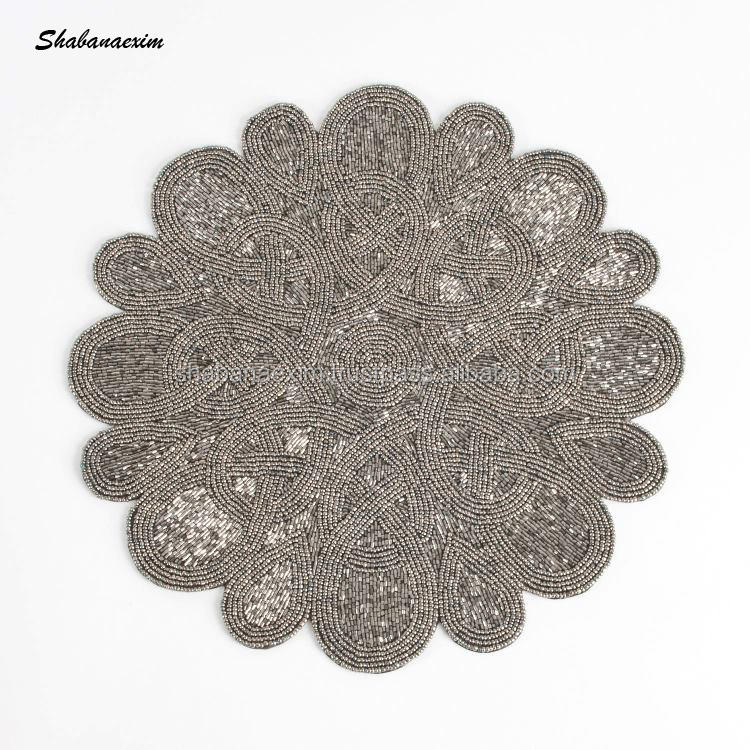 Posavasos decorativo hecho a mano, manteles individuales artesanales con cuentas redondas amarillas, mantel de mesa con cuentas de cristal con diferentes colores