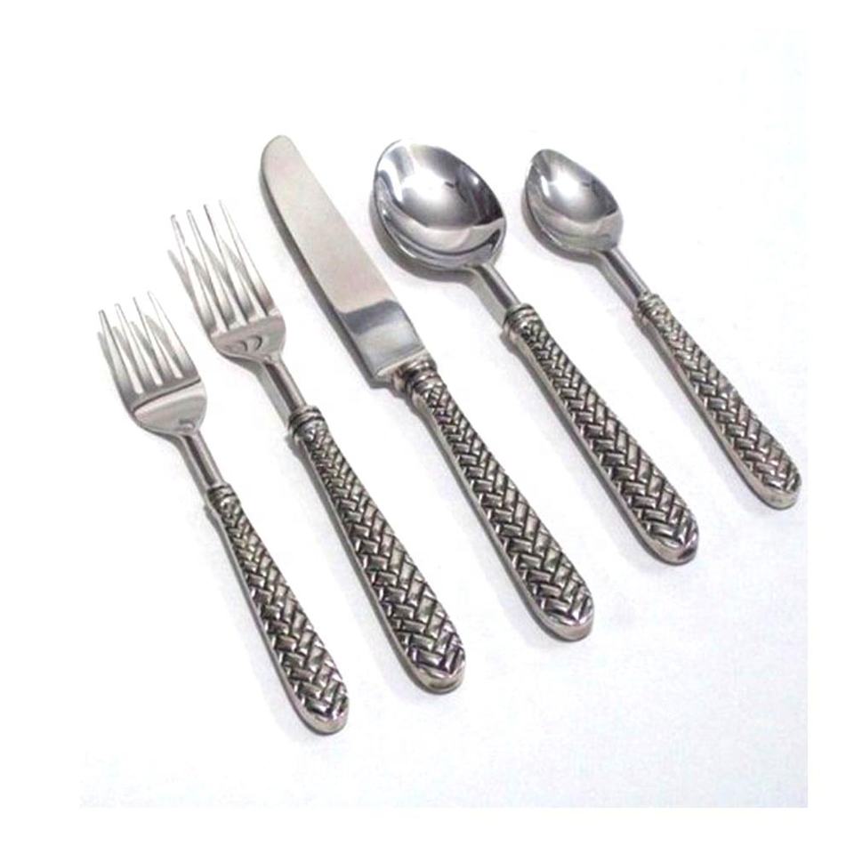 Juego de cubiertos hechos a mano decorativos de acero inoxidable, cubiertos hechos a mano de latón dorado en relieve, diseño Tropical, mango final