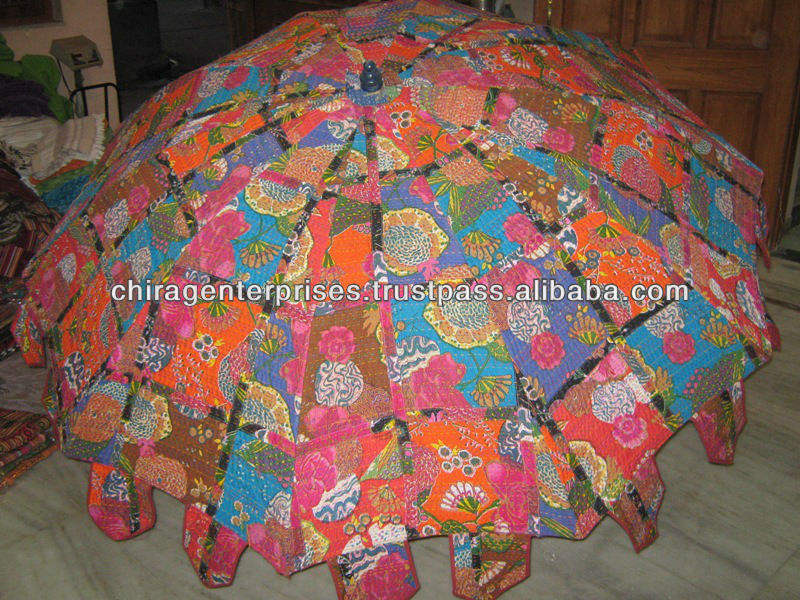 Sombrilla Moderna con Marco de Madera y Cenefa Blanca, Control Manual, Diseño Simple con Estampado Grande - Novedad para Jardines y Resorts
