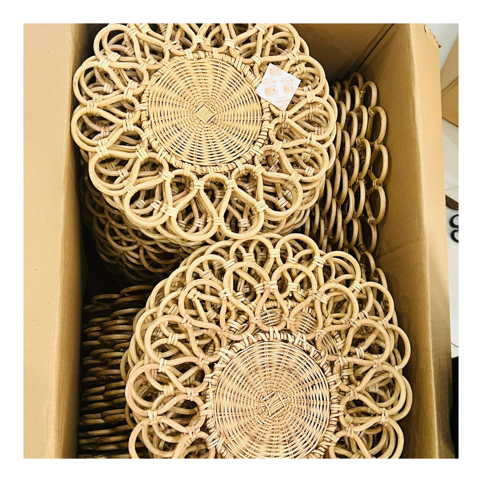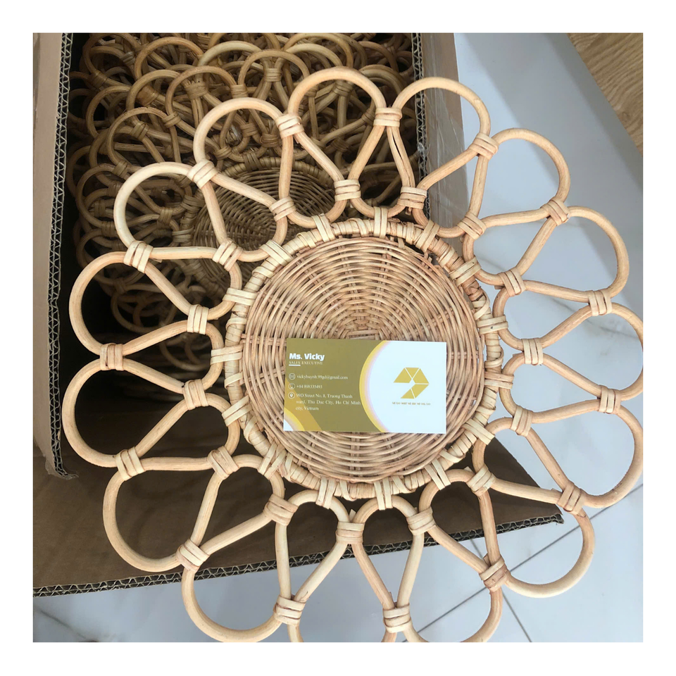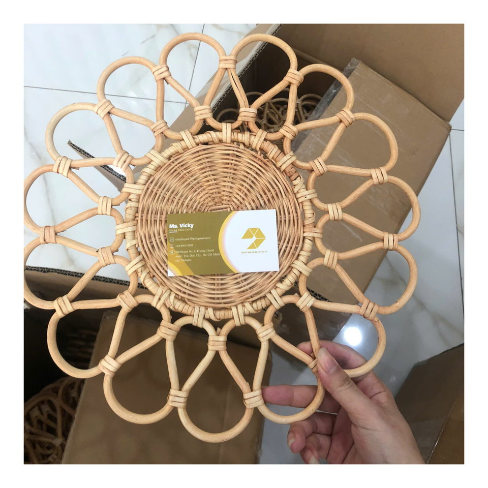 Plato decorativo de ratán hecho a mano, funcional pero elegante, ideal para exhibiciones de panadería, eventos de comida artesanal, suministro rápido al por mayor
