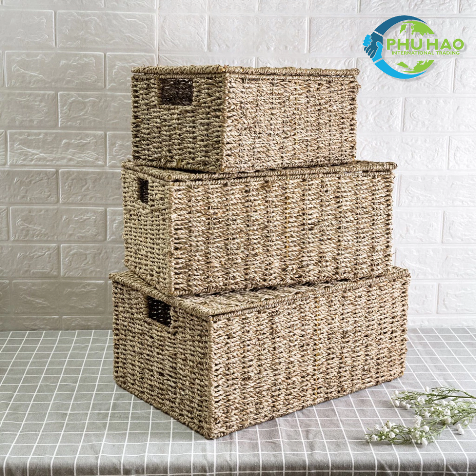 Cesta de almacenamiento de hierba marina hecha a mano decorativa con forro de algodón extraíble MARCO DE Metal duradero para uso doméstico artesanía de Vietnam