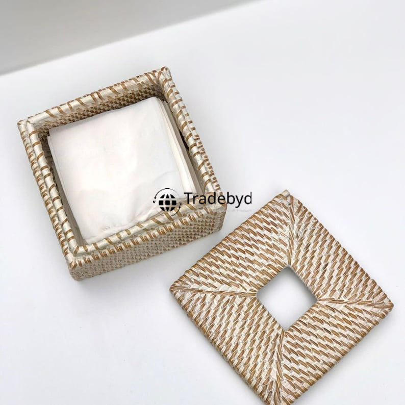 Porta Cajas de Pañuelos Decorativo Hecho a Mano de Mimbre Cuadrado para Sala de Estar Tradebyd