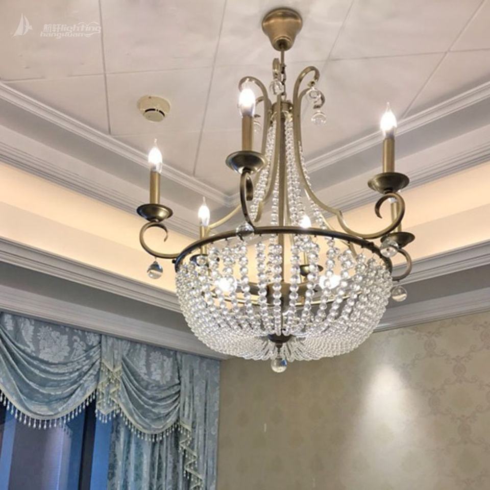 Luz colgante decorativa para entrada, escaleras, pasillo, mercado de pulgas de París, candelabro Grande, cuentas de cristal, luz colgante