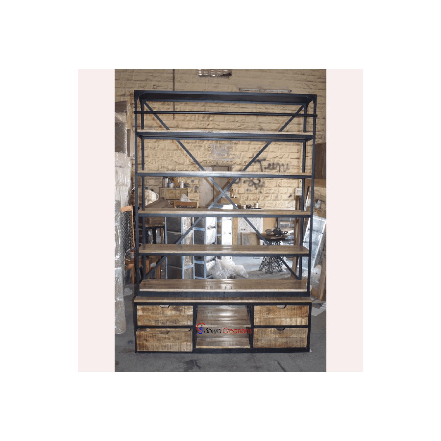 Escalera de madera de hierro decorativa Bookrack Muebles de Interior de estilo industrial Marco de metal negro con acabado de madera