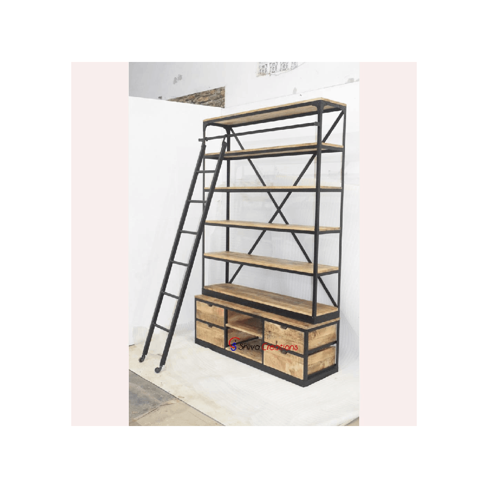 Hierro escalera de madera Bookrack