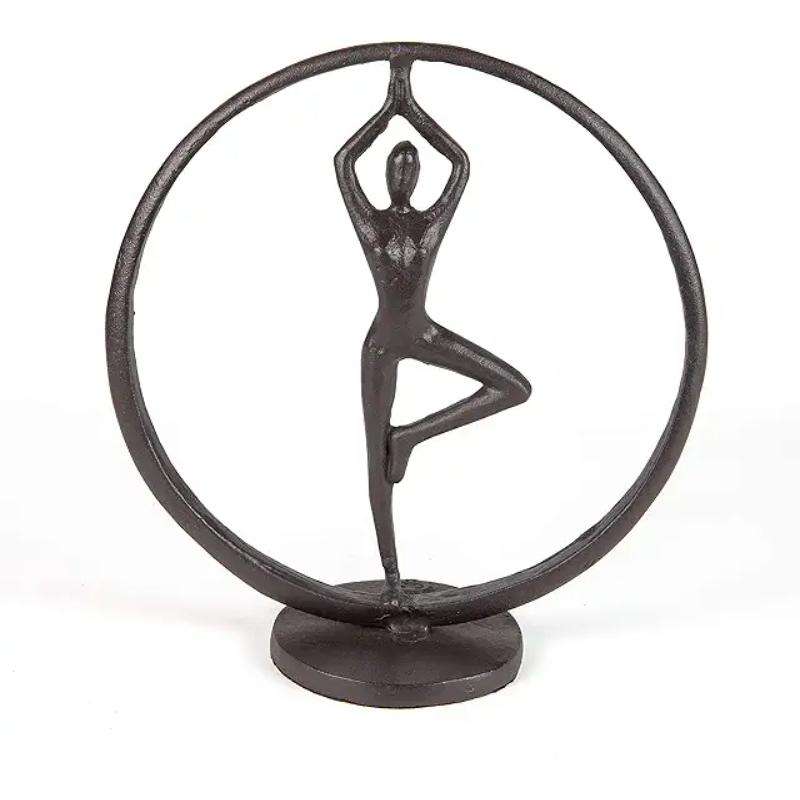 Figura decorativa de Yoga de hierro, escultura de Metal Chapado en plata, escultura de figura humana de Yoga para decoraciones del hogar