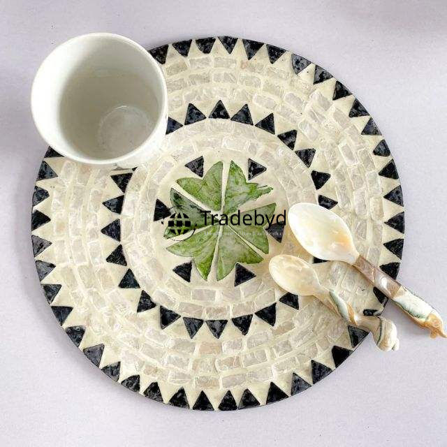 Bandeja decorativa con incrustaciones de fregona de Tradebyd Bandeja de nácar hecha a mano para exhibición de mesa elegante