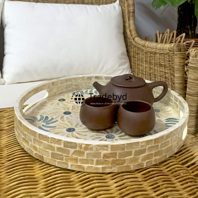 Bandeja decorativa con incrustaciones de fregona de Tradebyd Bandeja de servicio hecha a mano Premium para comedor y exhibición