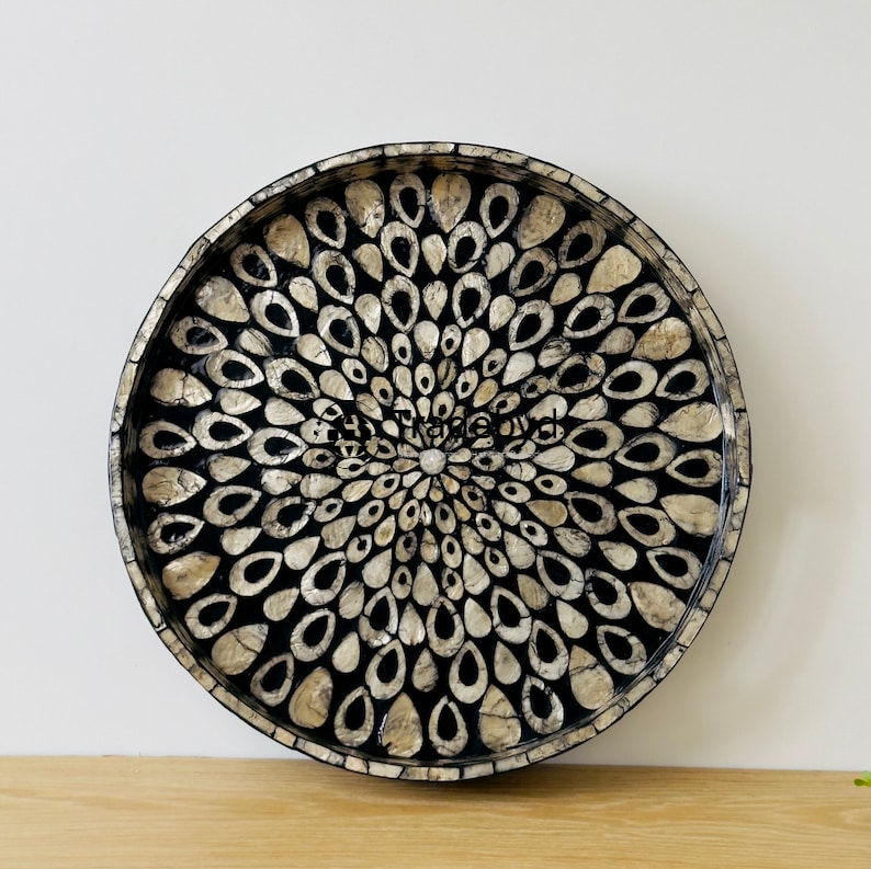 Bandeja decorativa con incrustaciones de fregona de Tradebyd Bandeja de nácar hecha a mano para exhibición de mesa elegante