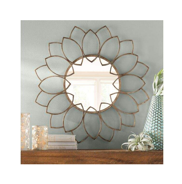 Espejos de Pared Decorativos de Metal, Espejos Flexibles de Pared Redondos, Muebles de Sala de Estar, Decoración del Hogar, Acabado en Latón Antiguo