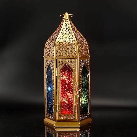 Farol Decorativo Marroquí para Uso Interior y Exterior, Elegante Pieza Decorativa que Agrega Estilo Bohemio e Iluminación Ambiental