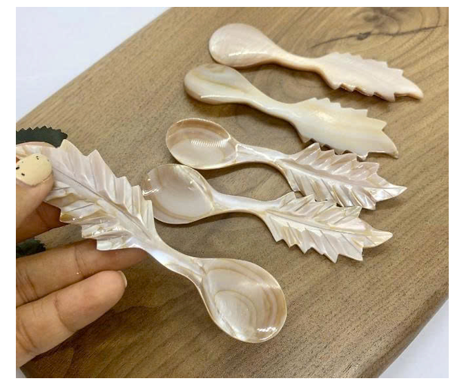 Cuchara decorativa de nácar para servir aperitivos y postres en eventos de bodas y fiestas