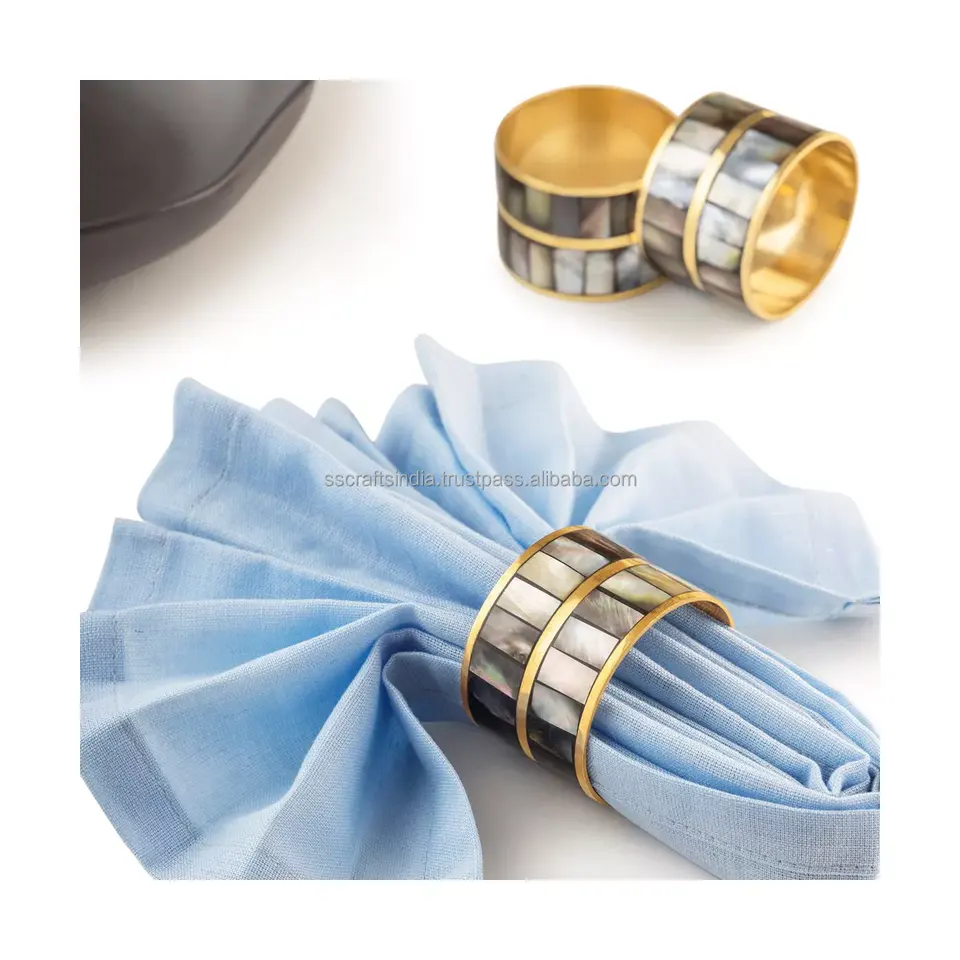 Anillo para Servilletas de Boda Minimalista y Lujoso, Nuevo Modelo, Porta Servilletas de Madreperla, Decoración de Mesa de Madera, Latón, Disponible en Negro/Dorado