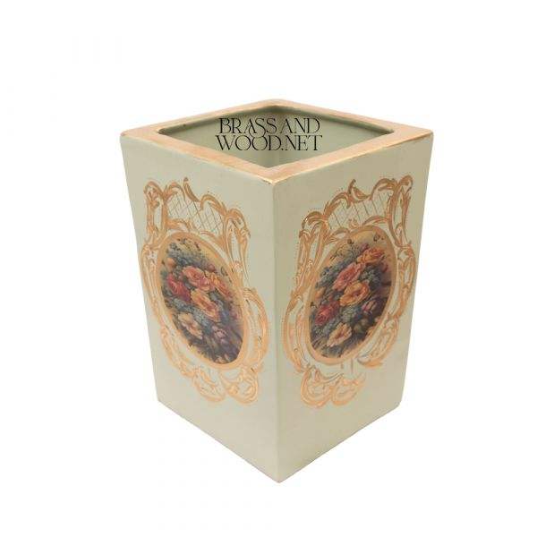 Maceta Decorativa de Porcelana, Cuadrada, Color Pistacho, de Lujo