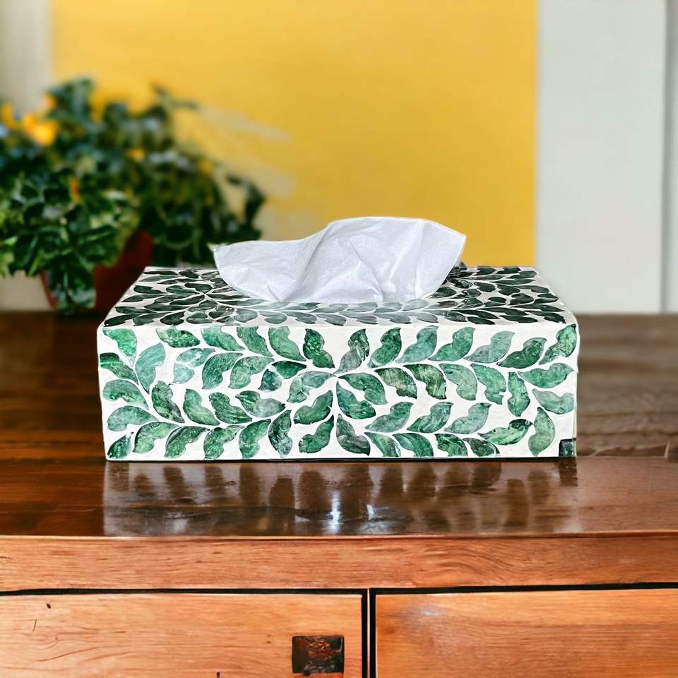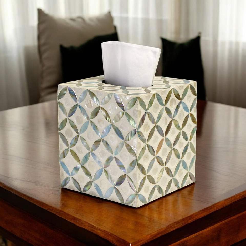 Caja de pañuelos decorativa de resina con incrustaciones de hueso, hecha a mano, duradera, con embalaje personalizado Craft Valley para el hogar y la oficina sofisticados.
