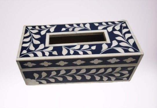 Caja de pañuelos de resina con incrustaciones de hueso