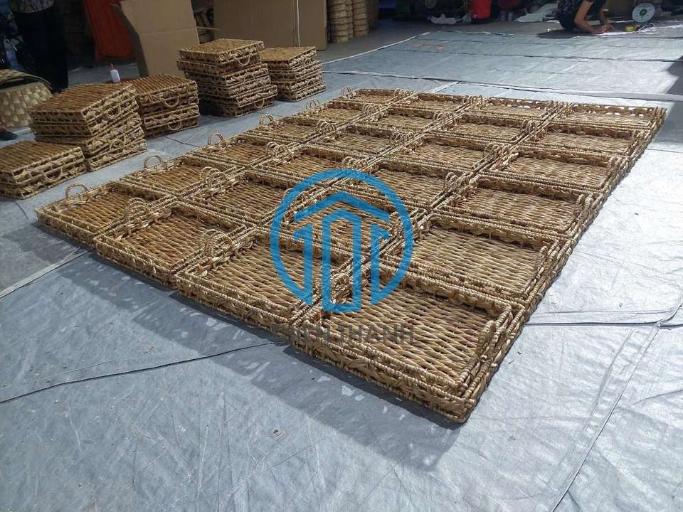 Bandeja decorativa de ratán con tejido abierto, organizador para mesa de centro, baño o tocador, bandeja de estilo rústico.