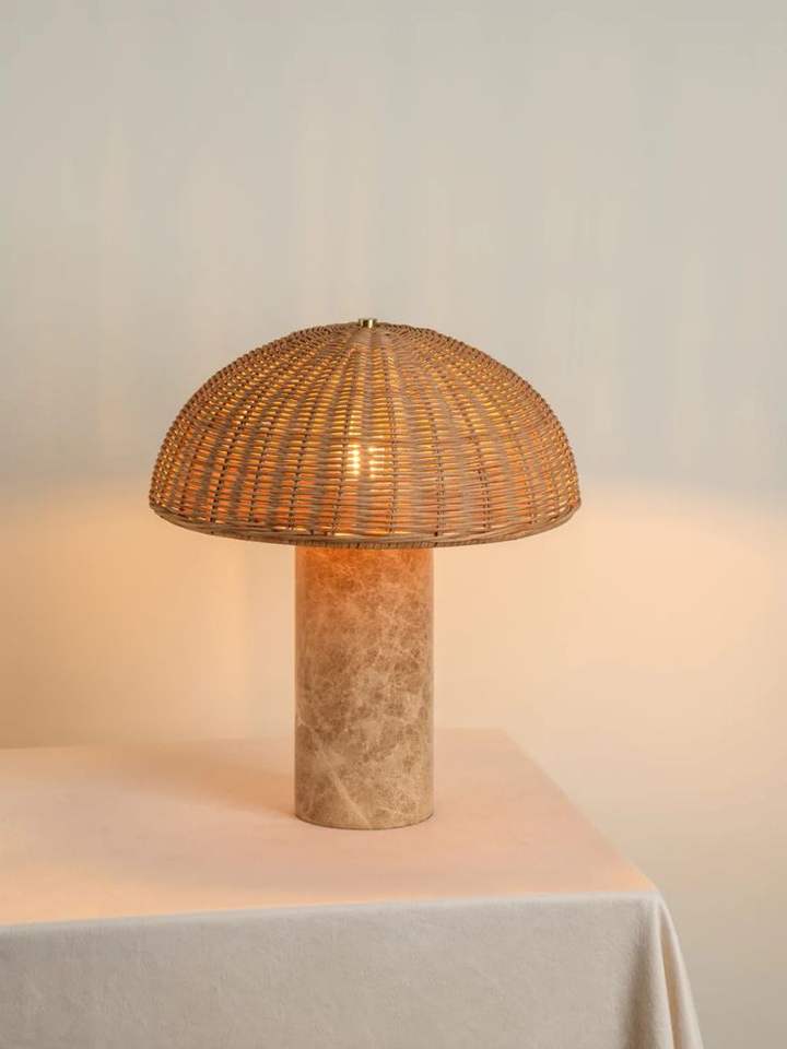 Lámpara de mesa decorativa de ratán con acabado rústico, perfecta para salas de estar de granja y dormitorios contemporáneos