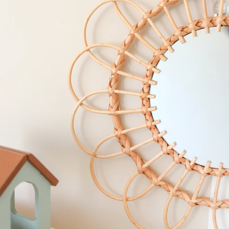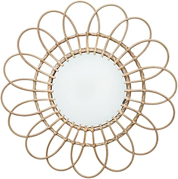Espejo de pared de ratán decorativo-Marco floral para interiores modernos y rústicos Espejo de flor de ratán bohemio
