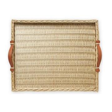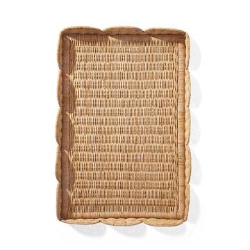 Bandeja de servicio tejida de mimbre rectangular decorativa bandeja de servicio de fruta de agua trenzada para servir bandeja de ratán tejida de La India