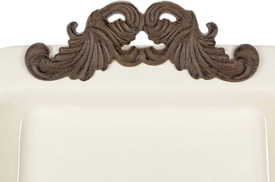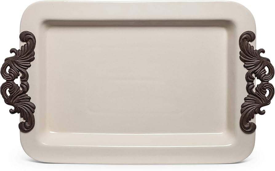 Bandeja Rectangular de Cerámica Color Crema con Asas de Metal Negro de 20x10 Pulgadas, Ornate Exports para Decoración del Hogar y Eventos