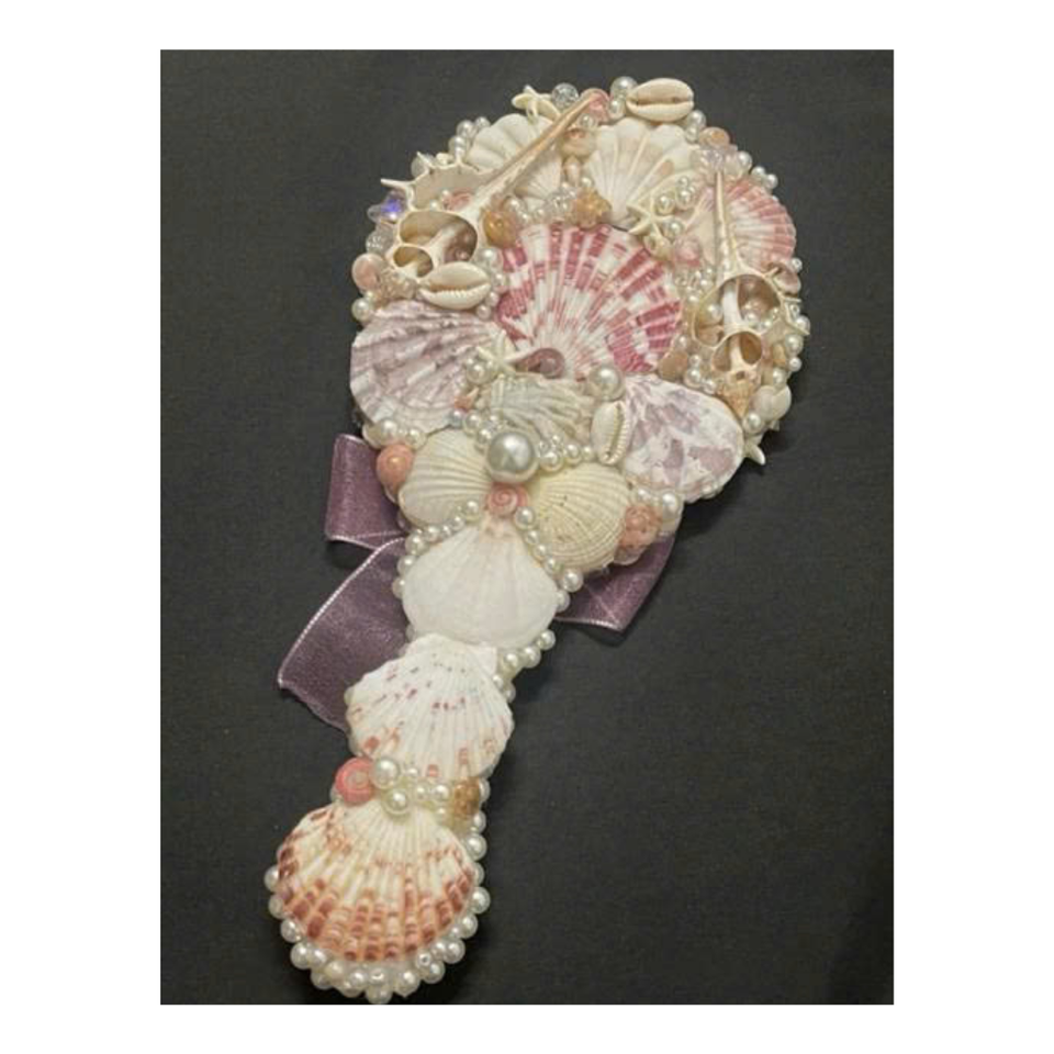 Espejo decorativo de concha marina con elementos naturales de la playa Espejo de concha marina Tamaño de bolsillo para maquillaje de verano y estilo de bolso