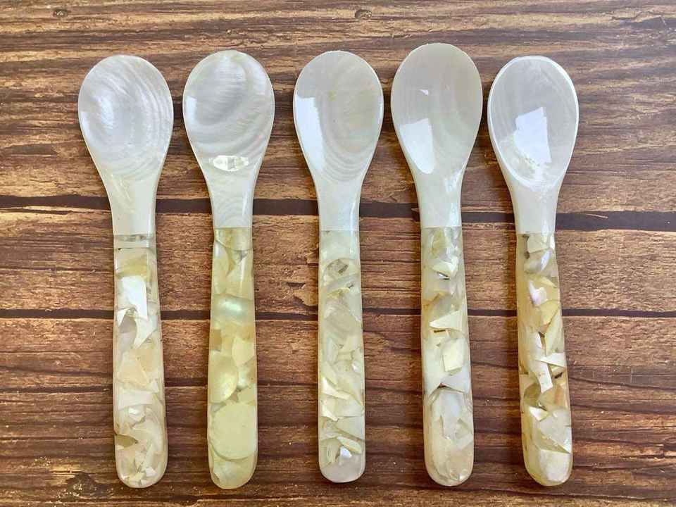 Cuchara decorativa de concha marina para comidas de alta gama. Cuchara de concha marina diseñada para una presentación de alimentos de primera calidad.