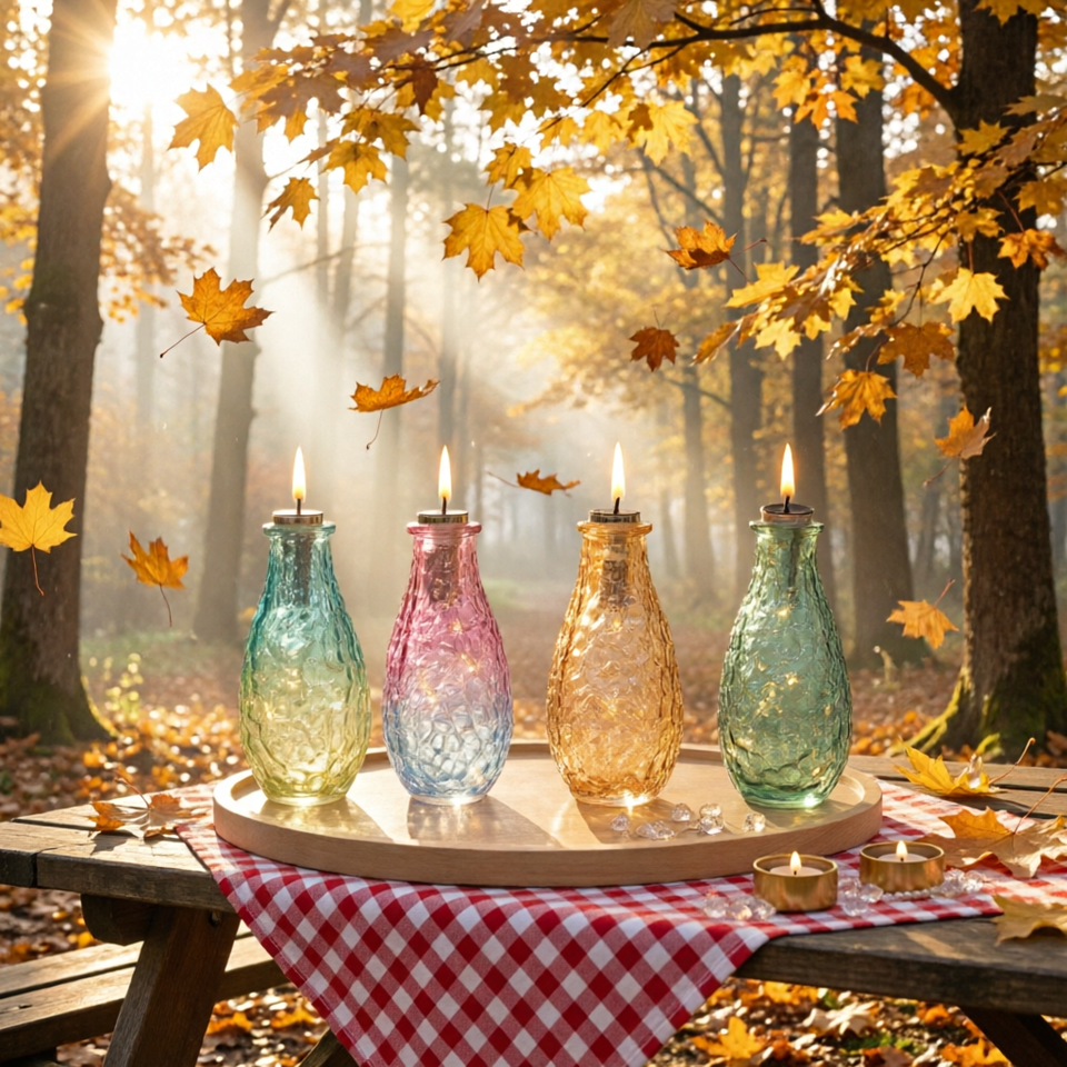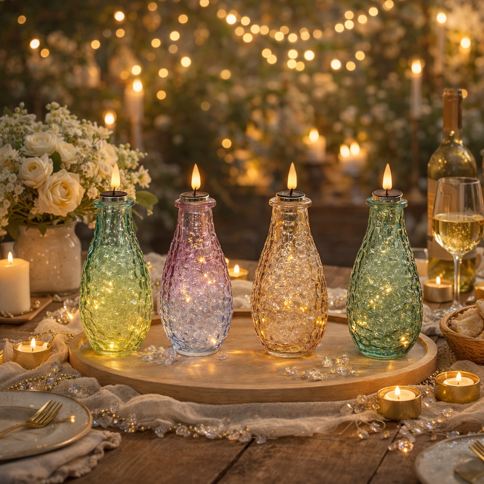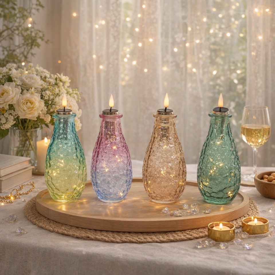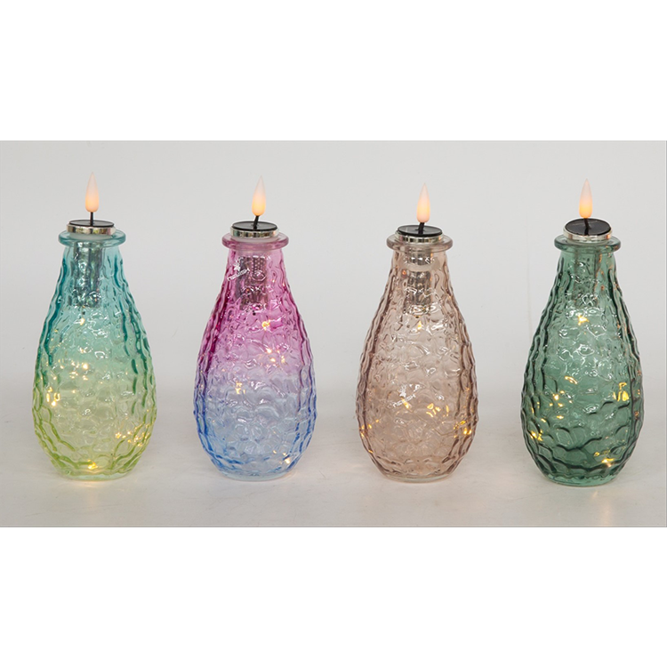 Lámpara de Mesa Decorativa de Vidrio Solar, Botella de Vidrio Texturizado con Vela LED sin Llama para Jardín, Balcón, Decoración de Fiestas
