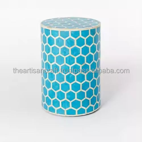 Mesa decorativa con incrustaciones de hueso hechas a mano, mesa redonda de diseño rayado con color personalizado de alta calidad de ARTISAN CRAFT