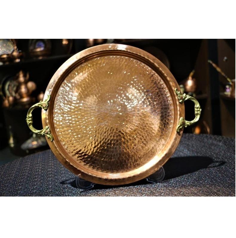 Bandeja decorativa con asas Bandeja redonda de cobre Bandeja de servicio de metal de cobre martillado con asas Cantidad a granel Fabricante 2023