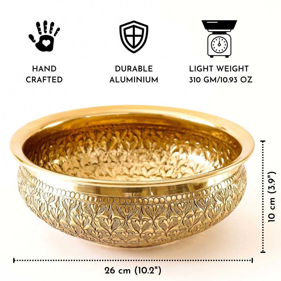 Bandejas Decorativas Anandi, Urli de Metal Dorado, Centro de Mesa Grande y Elegante para Decoración del Hogar, Tradicional, Étnico, Hecho a Mano, Duradero