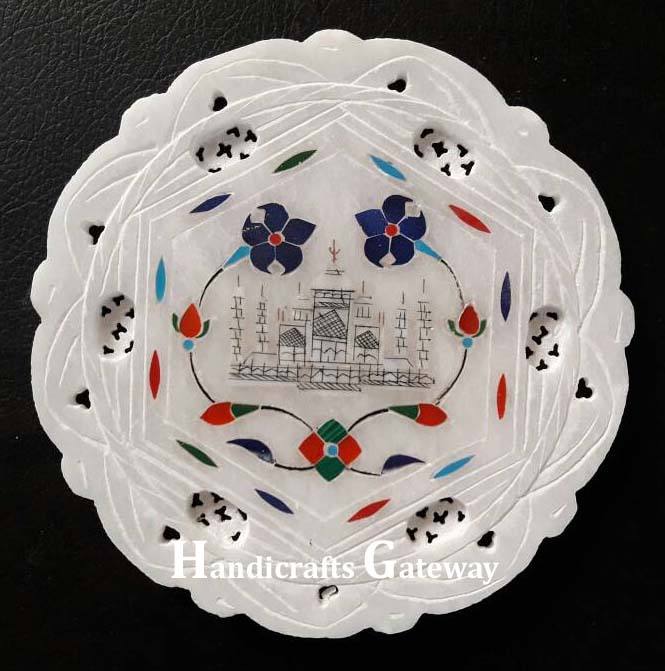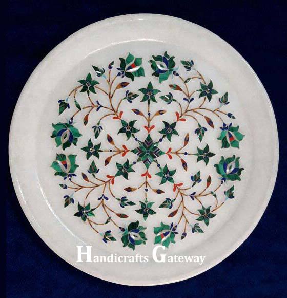 Placa decorativa de incrustaciones florales de forma redonda de mármol blanco para sala de estar y decoración del hogar, piezas de mesa al mejor precio barato