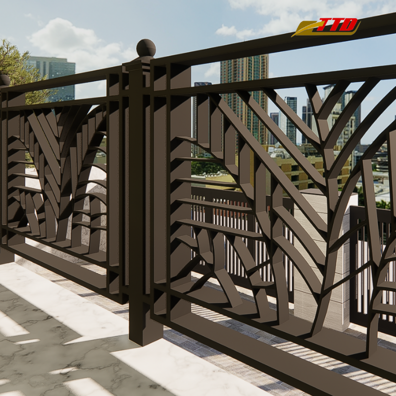 Barandilla de balcón decorativa de fabricación vietnamita con marco de metal fuerte y detalles artísticos de hierro forjado hechos a mano