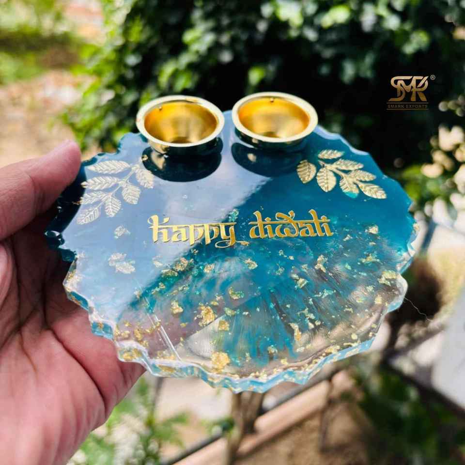 Plato de Oración Artístico Hecho a Mano con Resina Epoxi Ecológica Decorativa, Diseño de Modelo Thali para el Festival Diwali, Hogar Espiritual