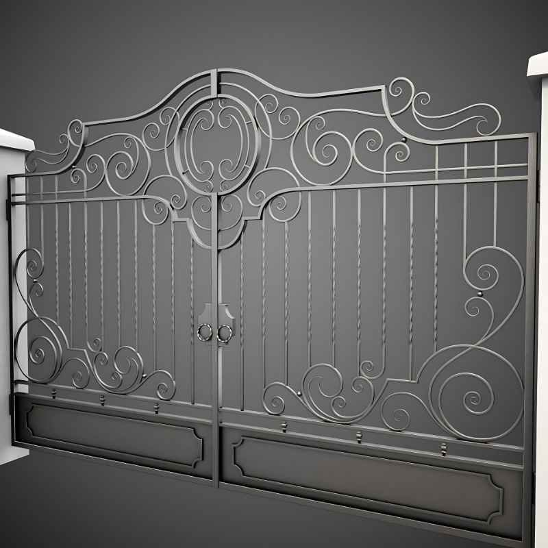 Puerta decorativa de hierro forjado con elegantes pergaminos florales hechos en Vietnam para entradas de jardines y cercas residenciales