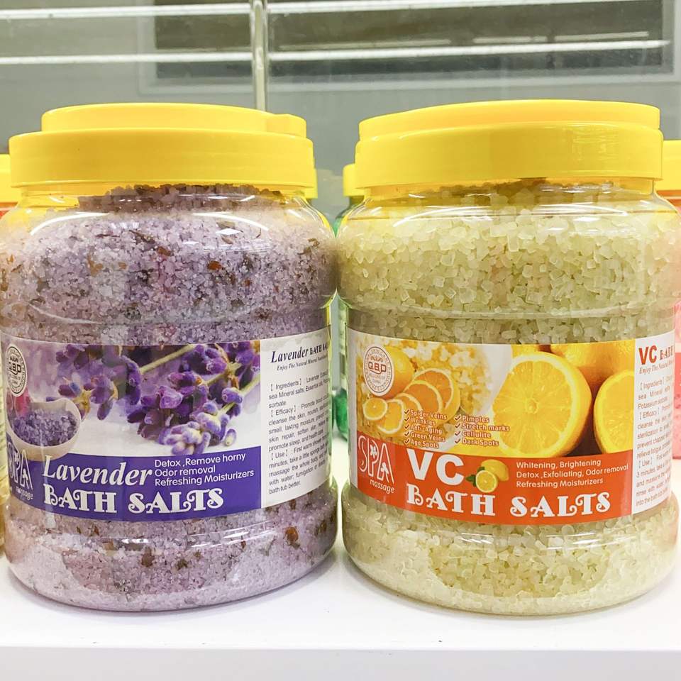 Sal de baño de SPA de limpieza profunda 3kg Sal marina de grano grueso infundida con aceite esencial de fragancia de leche de lavanda rosa y aloe