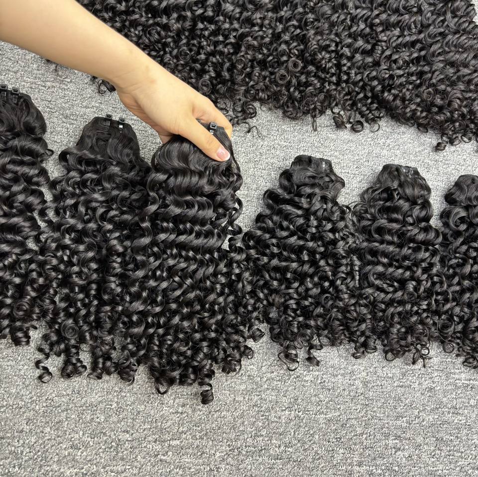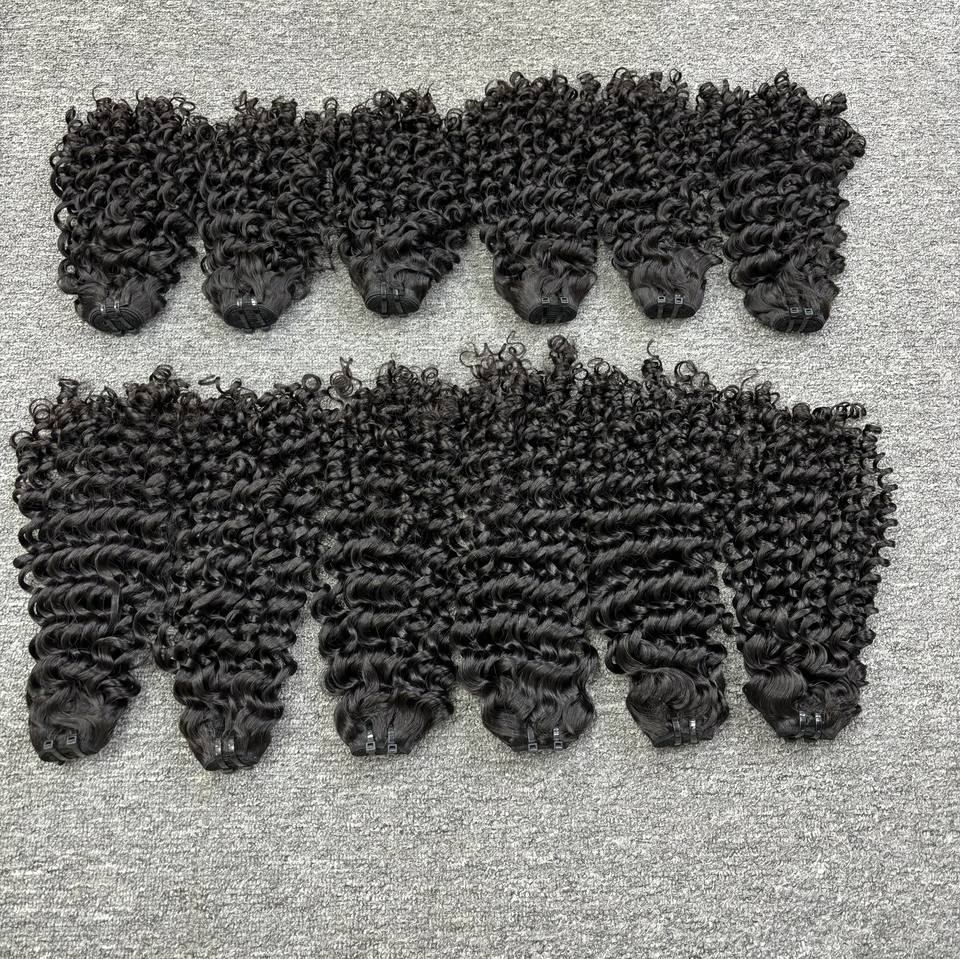 Textura vietnamita rizada profunda 100% Cutícula humana alineada Raw Remy Virgin Machine Extensiones de tejido de cabello de trama doble Natural 1B