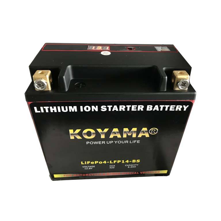 De ciclo profundo de litio de la batería de la motocicleta 12V LFP14-BS(YTX14-BS) lifepo4 batería de la motocicleta para la motocicleta scooters