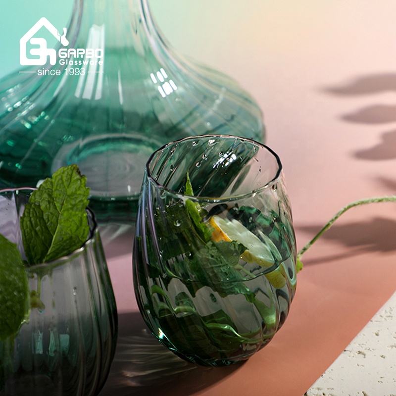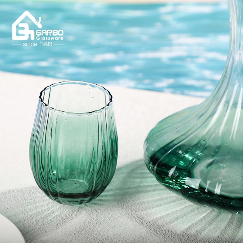 Juego de Vasos de Vidrio de Alta Gama con Rayas Verdes Profundas para Vino Tinto y Champán, Vasos Altos, Regalo Empresarial