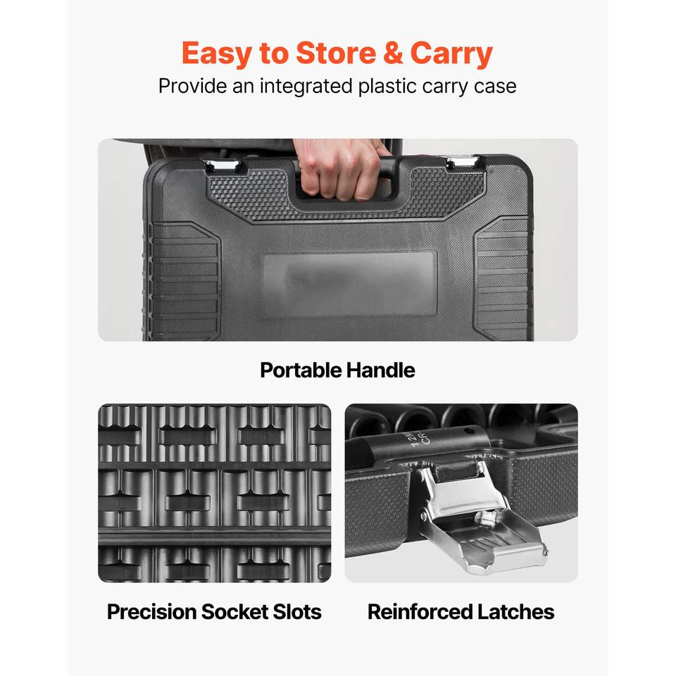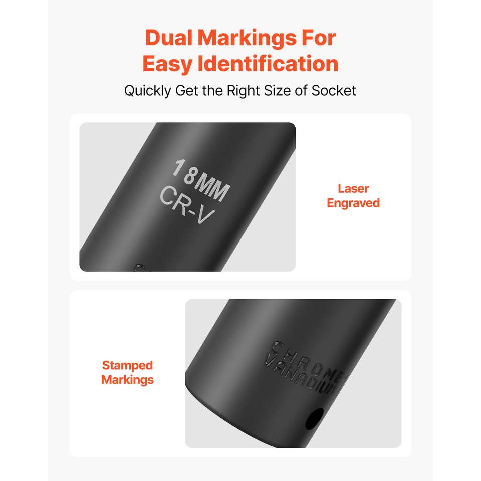 Juego de Llaves de Impacto Profundas de 26 Piezas, 1/2'' Métricas, 11-36 mm, 6 Puntas, Acero Aleado CR-V Cr-Mo para Reparación de Automóviles