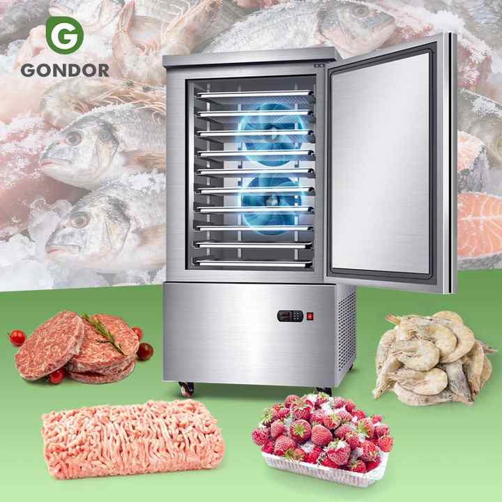Congelador de mesa de gran capacidad y bajo consumo para pescado y carne, con sistema de enfriamiento rápido, ideal para verduras congeladas.