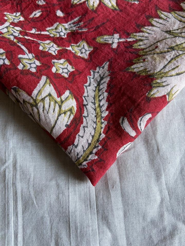 Tela de Algodón Estampada a Mano con Diseño Floral Rojo Intenso, Diseño Botánico Clásico Europeo Vintage