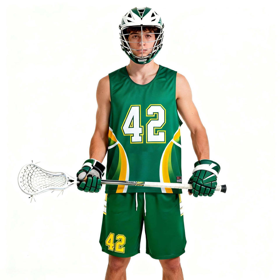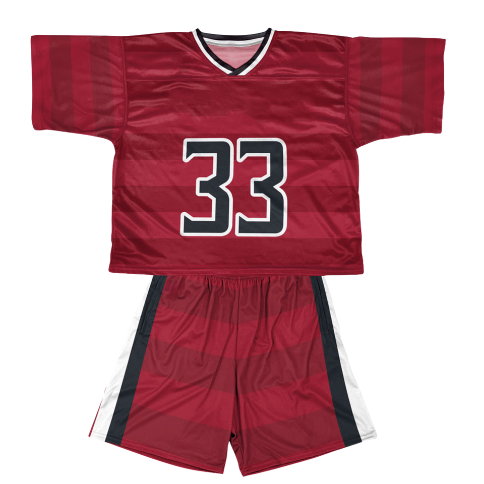 Uniforme de Lacrosse a Rayas Rojo Oscuro Personalizado, Conjunto de Camiseta y Pantalones Cortos de Lacrosse Sublimados para Hombre, Ropa Deportiva Transpirable para Equipos