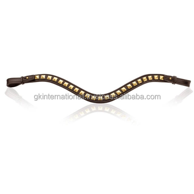 Banda para cejas de caballo de cuero genuino con forma de onda profunda con cadena de pirámide cuadrada decorada banda para cejas para caballos