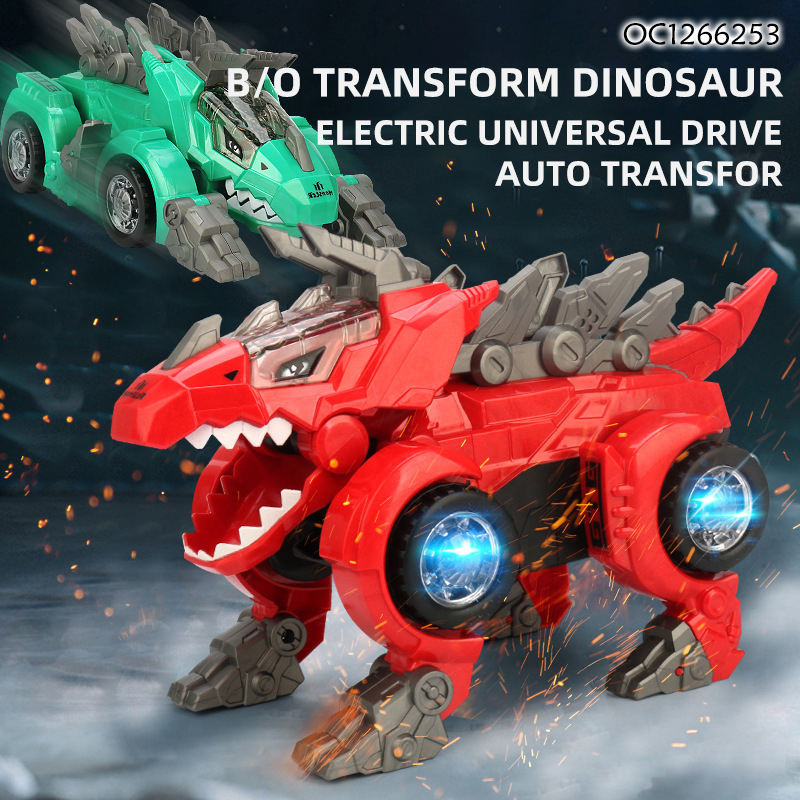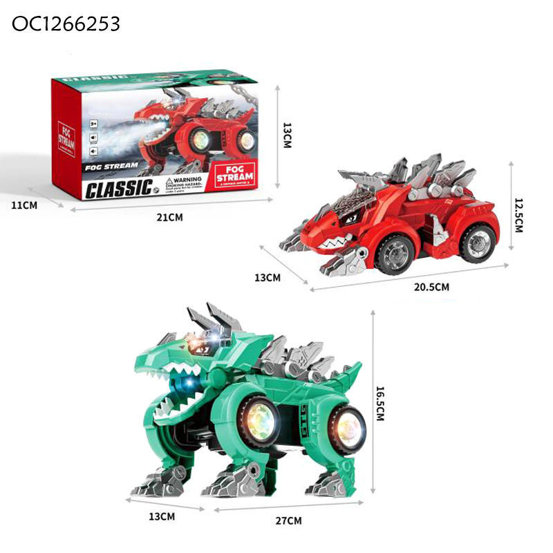 Descripción:Dinosaurio transformable B/O con luz/música/spray de niebla