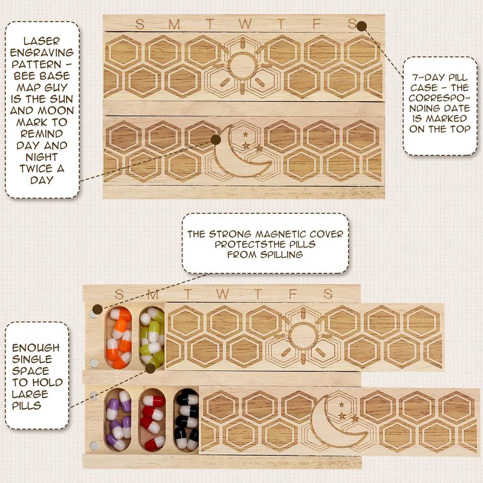 Nombre del producto:Estuche de madera de bambú degradable para pastillas, dos veces al día